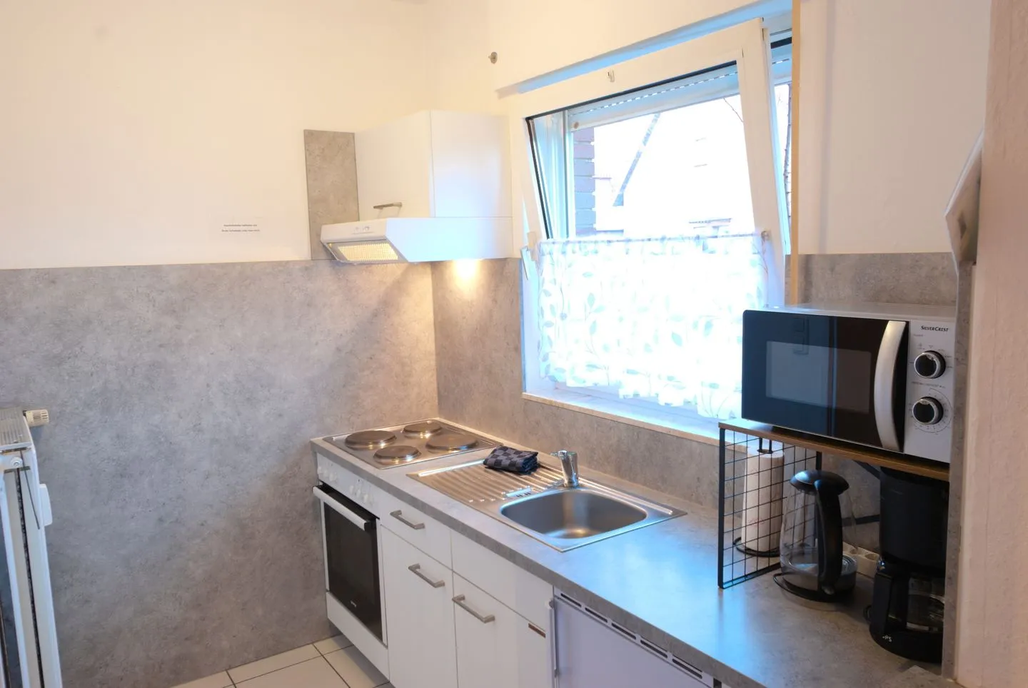 Die Kochnische ist mit einer Küchenzeile ausgestattet. Sie hat einen Kühlschrank, 4 Platten-Kochfeld, Backofen, Mikrowelle, Filter-Kaffeemaschine, Senseo-Maschine, Eierkocher, Toaster, Besteck, Küchenutensilien und Wasserkocher.